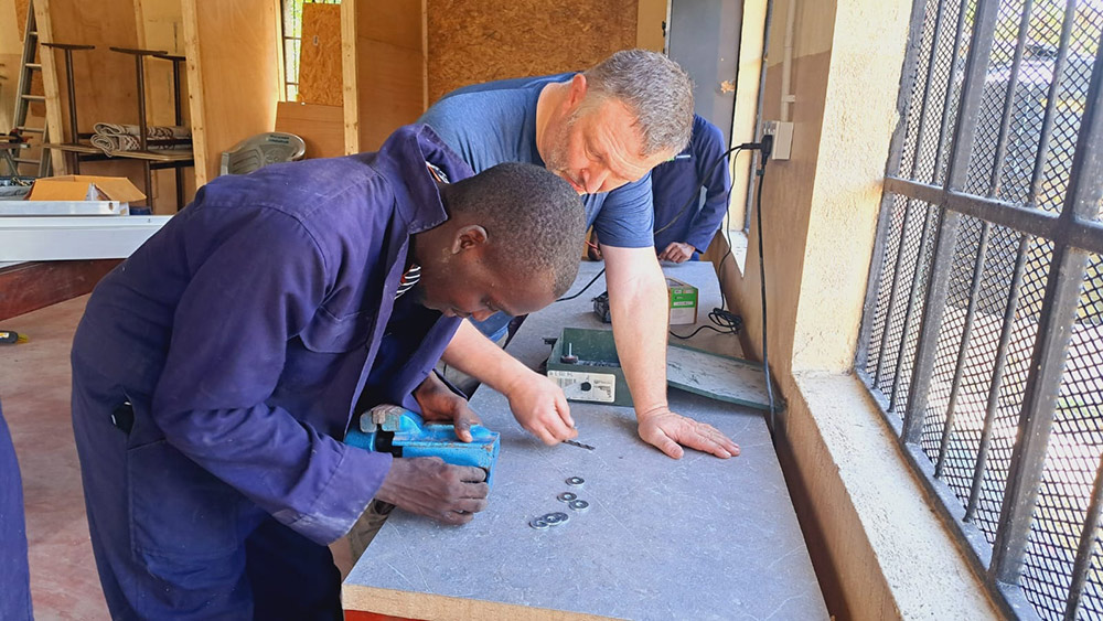 Ein großer Meilenstein: Die erste Gruppe von Auszubildenden, die erfolgreich ihre Level-3-Zertifikate abgeschlossen hat, ist mittlerweile offiziell berufstätig und kann durch ihr Einkommen die eigenen Familien unterstützen. Ihr Wissen bringen sie weiterhin in das Projekt ein – unter anderem durch die Elektroinstallationen in unserem neuen Gebäude, die sie vollständig verantworten.